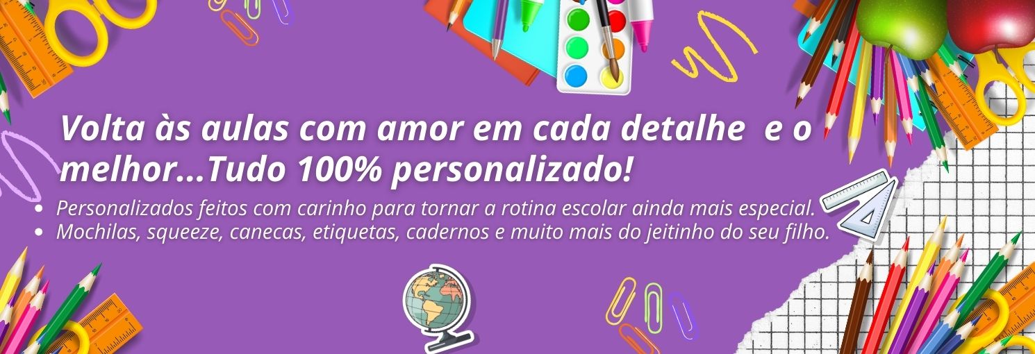 Cada detalhe importa: Transforme a volta às aulas em algo único com personalizados feitos especialmente para você! 💜
