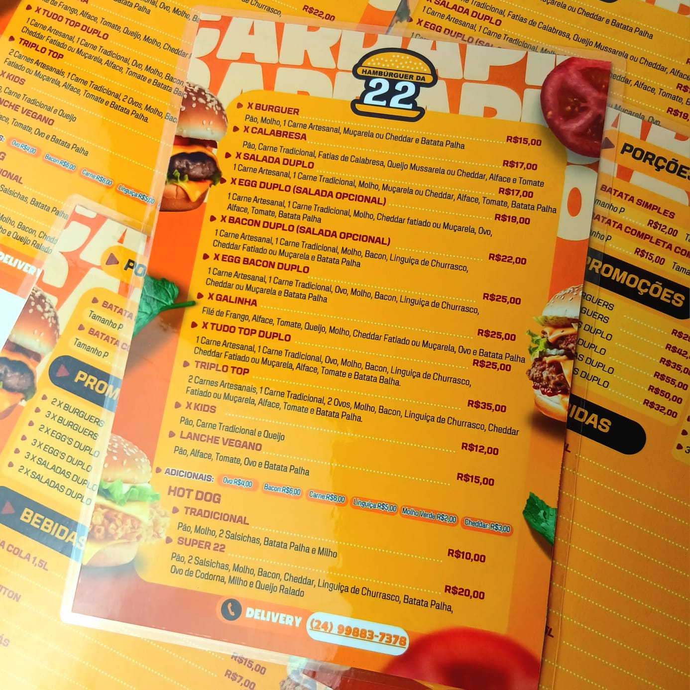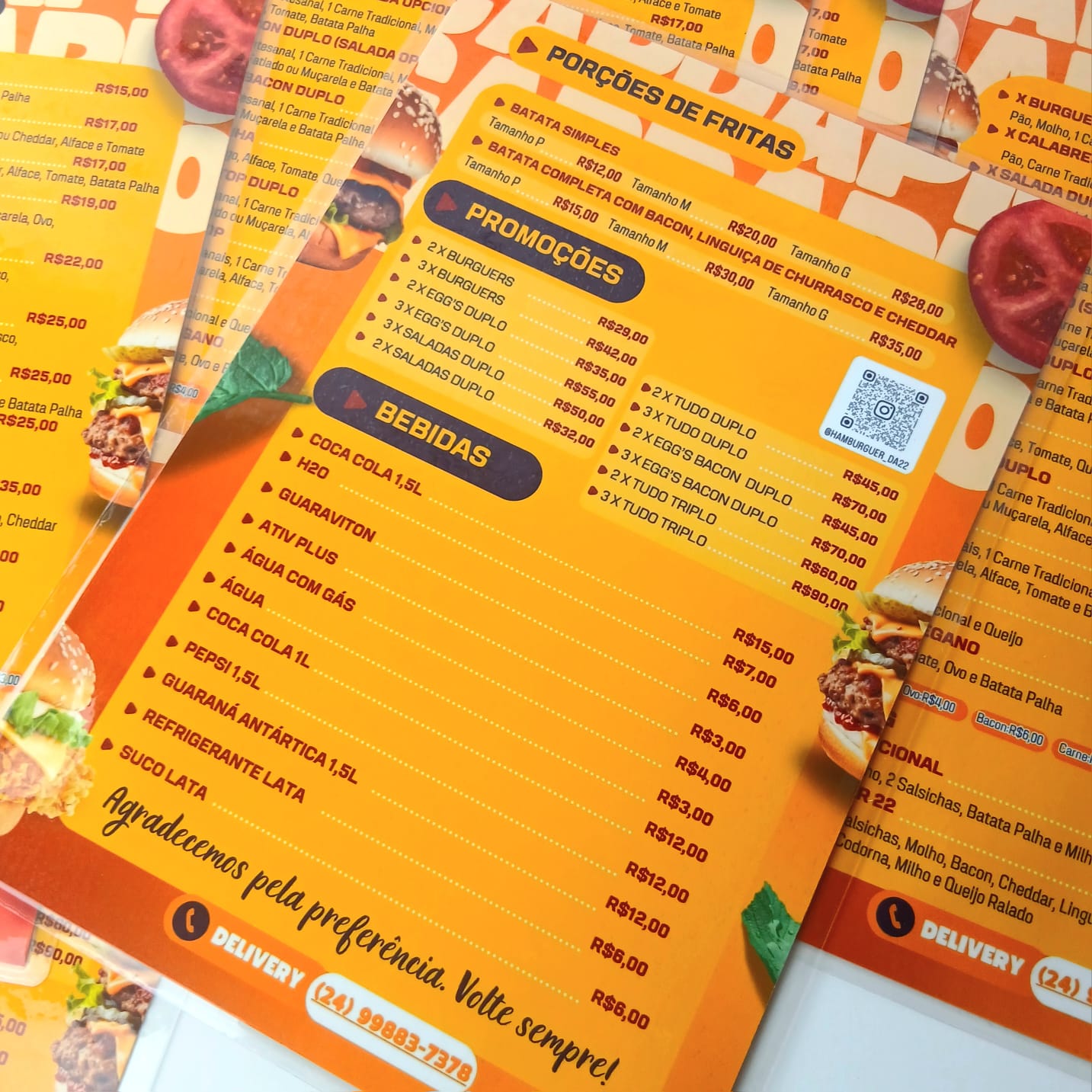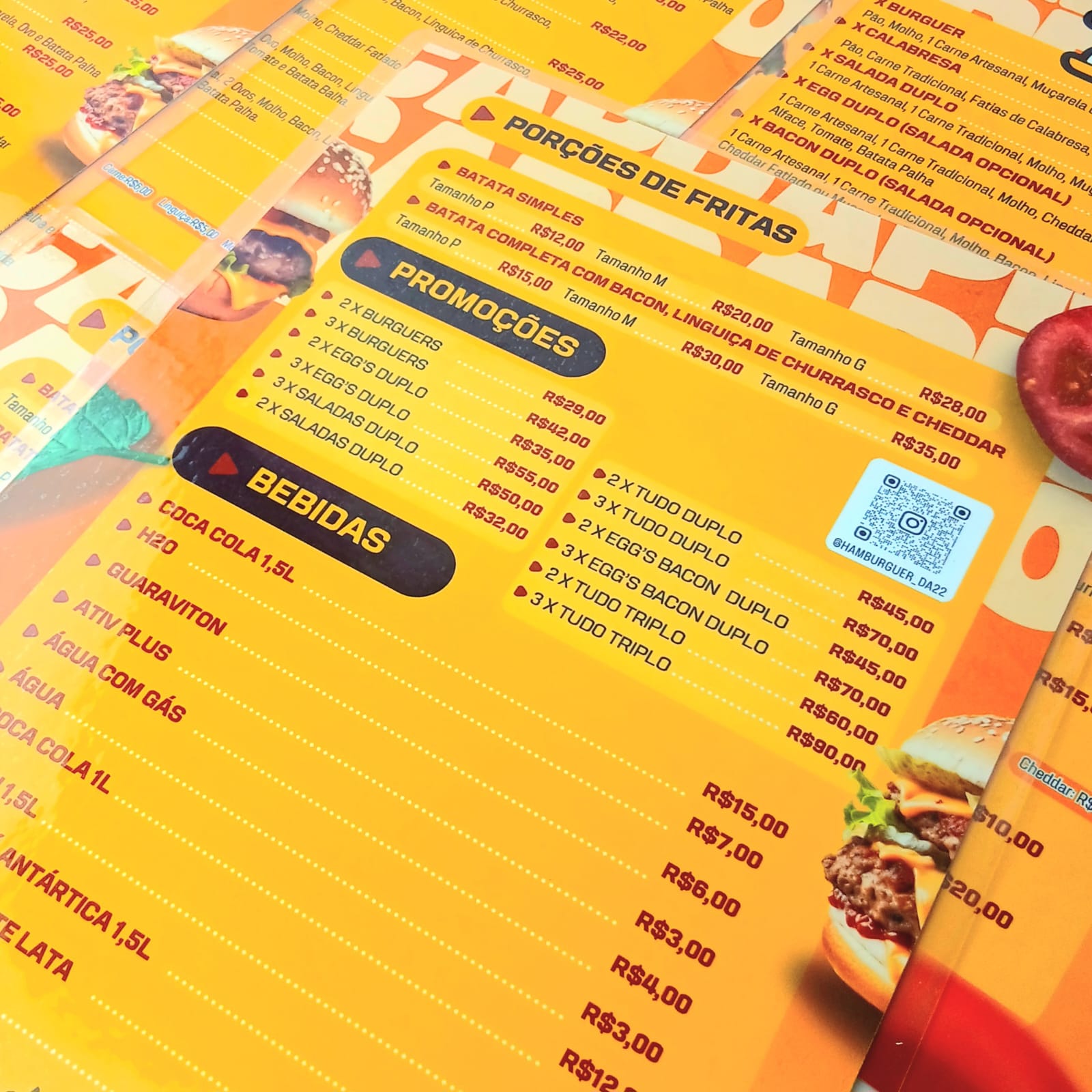 Cardápio impresso no papel fotográfico A4 (Frente e verso)