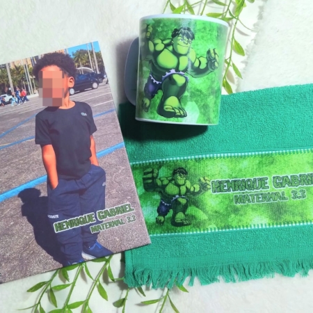 A arte é desenvolvida de acordo com o tema escolhido pelo cliente, garantindo um visual exclusivo e encantador para o material escolar